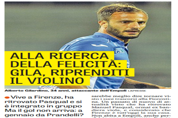 Gazzetta dello Sport, ex rosa: “Alla ricerca della felicità, Gila riprenditi il violino. Ma il gol non arriva: a gennaio da Prandelli?”