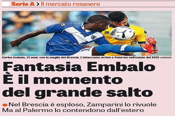 “L’investitura è arrivata direttamente dal presidente Zamparini: nel nuovo attacco del Palermo ci sarà anche Carlos Embalo. L’attaccante esterno della GuineaBissau, esploso quest’anno nel Brescia dove era stato ceduto in prestito, per il patron rosanero deve tornare alla casa madre. Cinque gol e 11 assist, oltre a un rendimento costante sono le credenziali giuste per fare il grande salto in Serie A. Era arrivato con grandi ambizioni appena diciottenne nell’estate del 2013, il Palermo era appena retrocesso in Serie B, l’allora direttore sportivo Perinetti lo portò in rosanero per 195 mila euro prelevandolo dal Chaves società portoghese. Quella stagione fece la spola tra Primavera e prima squadra senza mai trovare spazio con Gattuso prima e Iachini poi. In compenso con i ragazzi di Bosi si fece notare mettendo a segno 7 gol. La stagione successiva venne dato in prestito prima al Carpi e poi al Lecce in Lega Pro. RIVELAZIONE L’esplosione avviene nell’ultima annata. Boscaglia ne fa un perno inamovibile del suo Brescia nel quale Embalo collezione ben 40 presenze. Corsa, velocità, dribbling, e cross. La fascia sinistra è il suo territorio di appartenenza. Se è vero, come ha detto Zamparini, che il Palermo l’anno prossimo, per via della partenza di Vazquez, dovrà giocare con 3 attaccanti, Embalo può giocarsi la sua chance nel grande calcio. C’è, però, una scoglio da superare costituito dal rinnovo del contratto che scade a giugno 2017. Perché nel frattempo le sue prestazioni hanno attirato le attenzioni di club stranieri. Anderlecht e Stoccarda sono in pressing per accaparrarselo, approfittando dell’ultimo anno di contratto. I belgi inoltre faranno i preliminari di Champions League e la prospettiva, oltre a quella economica, è molto allettante. Embalo però è anche molto legato al Palermo, la società che lo ha portato in Italia, le parole del presidente inoltre lo hanno molto gratificato. RINNOVO Il club sta lavorando per trattenerlo e rinnovare, i contatti col suo agente soprattutto dall’arrivo di Rino Foschi sono costanti e proficui. Perché il Palermo guarda ai giovani e quelli che ha non vuole farseli scappare. Per un giocatore che torna ce n’è un altro, sempre in prestito, che può fruttare soldi in entrata. Zamparini guarderà con interesse l’esito della finale playoff tra Trapani e Pescara, perché negli abruzzesi c’è Ahmad Benali. In caso di promozione il Pescara ha l’obbligo del riscatto del centrocampista libico a un milione di euro. Una bella plusvalenza visto che era stato preso dal Brescia a parametro zero la scorsa estate”. Questo quanto riportato dall’edizione odierna de “La Gazzetta dello Sport”.