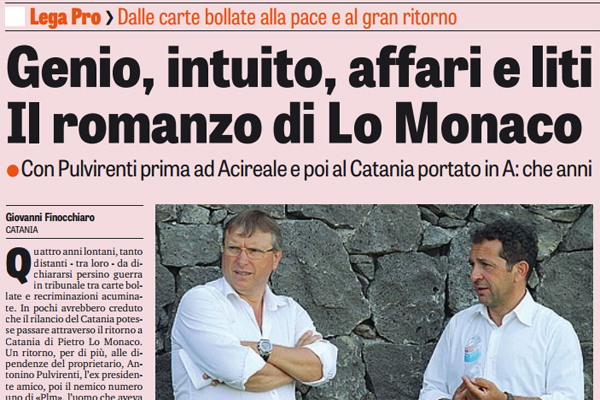 Gazzetta dello Sport: “Genio, intuito, affari e liti. Il romanzo di Lo Monaco con Pulvirenti prima ad Acireale e poi al Catania portato in A: che anni”