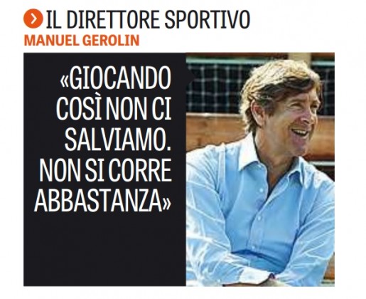Gazzetta dello Sport: “Gerolin pessimista: «Giocando così non ci salviamo, la squadra non corre!»”