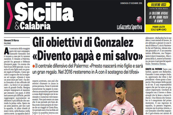 Gazzetta dello Sport: “Gli obiettivi di Gonzalez: «Divento papà e mi salvo»”