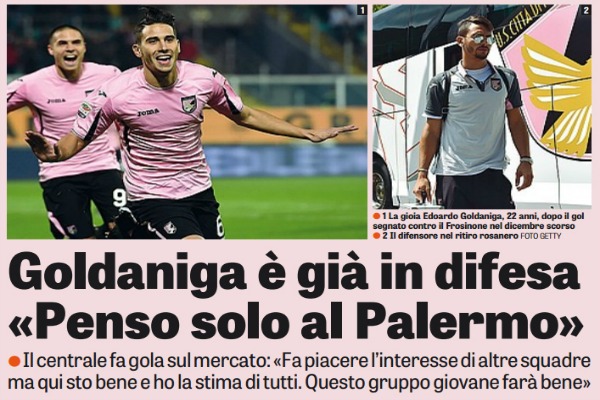 Gazzetta dello Sport: “Goldaniga è già in difesa, «Penso solo al Palermo». Il centrale fa gola sul mercato”