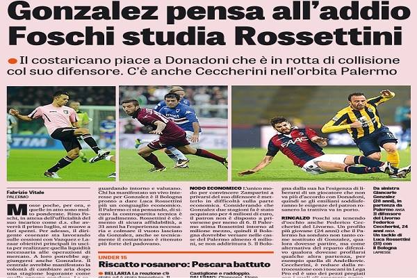 Mosse poche, per ora, e quelle in atto sono molto ponderate. Rino Foschi, in attesa dell’ufficialità del suo incarico come d.s. che avverrà il primo luglio, si muove a fari spenti. Per adesso, il dirigente cesenate sta lavorando sulle cessioni con Vazquez e Lazaar obiettivi principali in uscita per realizzare quella liquidità necessaria alle operazioni di mercato. A loro potrebbe aggiungersi anche Gonzalez. Il centrale avrebbe manifestato la volontà di cambiare aria dopo una stagione logorante come quella appena conclusa. La società ha registrato l’intenzione del costaricano, ma nelle stanze dei bottoni non c’è la totale convinzione di rinunciare a un elemento che negli ultimi due anni è stato il cardine della difesa. A meno che non ci sia un introito economico di un certo rilievo. Zamparini e Foschi si stanno guardando intorno e valutano. Chi ha manifestato un vivo interesse per Gonzalez è il Bologna pronto a dare Luca Rossettini più un conguaglio economico. Il Palermo ci sta pensando, di sicuro la contropartita tecnica è di gradimento. Rossettini è elemento di sicura affidabilità, a 31 anni ha l’esperienza necessaria e colmare il vuoto lasciato da Gonzalez, anche se tecnicamente il costaricano è ritenuto più forte del padovano. NODO ECONOMICO L’unico modo per convincere Zamparini a privarsi del suo difensore è metterlo in difficoltà sulla parte economica. Considerando che Gonzalez due stagioni fa è stato acquistato per 4 milioni di euro, il patron non è disposto a privarsene per meno di 6. Il Palermo stima Rossettini intorno al milione mezzo, quindi il Bologna dovrebbe versare nelle casse del Palermo almeno 4 milioni, se non addirittura 5. Il Bolo­gna dalla sua ha l’esigenza di liberarsi di un giocatore che non va più d’accordo con Donadoni, quindi se gli emiliani soddisferanno le esigenze del patron rosanero la trattiva va in porto.” Questo quanto si legge sull’edizione odierna de “La Gazzetta dello Sport”.
