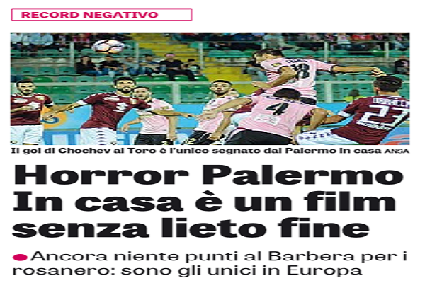 Gazzetta dello Sport: “Horror Palermo. In casa è un film senza lieto fine, al “Barbera” ancora zero punti: rosanero gli unici in Europa”