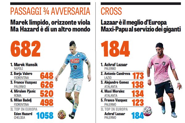 Gazzetta dello Sport: “I record del 2015, Vazquez e Lazaar super” (FOTO)