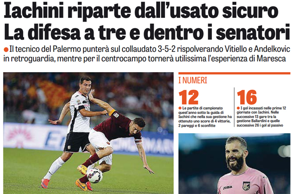 “Adesso il punto è da dove ripartire. Il secondo atto di Beppe Iachini inizia decisamente in salita. All’orizzonte c’è la Roma rilanciata da Spaletti e l’allenatore dovrà ricomporre le macerie create negli ultimi mesi. Al suo primo giorno di allenamento a Boccadifalco ha trovato alcune facce nuove e qualche vecchia conoscenza in meno. Il mercato ha ridisegnato l’organico. Se n’era andato lasciando in squadra Rigoni, Daprelà e Colombi. Tre che oggi gli avrebbero fatto davvero comodo, ma la strategie non proprio lungimiranti di Zamparini hanno portato alla rinuncia di tutti e tre i giocatori e considerato l’infortunio di Sorrentino, sarebbe stato molto più sensato non privarsi di un portiere che la Serie A l’aveva già fatta. MENO ESPERIENZA Adesso, invece, rispetto alla sua ultima gara, quella vinta col Chievo, avrà un capitano in meno e un diciottenne che ha debuttato, per fortuna molto bene, domenica scorsa a cui affidare la porta all’Olimpico. Un aspetto che abbassa ulteriormente la rosa di una squadra già abbastanza giovane. Iachini, però, potrà contare su un giocatore che fino a novembre non era disponibile. MORGANELLA Alla conta degli assenti, a cui va aggiunto anche Goldaniga per infortunio, per fortuna fa da contraltare la presenza di Morganella che nel primo periodo di Iachini era out e che adesso può fornire qualcosa in più in termini di esperienza. Lo svizzero è uno dei superstiti della vecchia guardia quella che ha caratterizzato gli ultimi due campionati tra Serie B e Serie A. E conoscendo Iachini, per dare subito una quadratura al cerchio, si affiderà agli elementi più di lungo corso ed a quelli con maggiore esperienza. Ha chiesto è ottenuto carta bianca e la linea sembra tracciata. CERTEZZE L’emergenza impone di restituire certezze. La prima sarà data dal modulo e dal 3- 5-2 sul quale il Palermo ha fondato le ultime due annate e che anche quest’anno aveva dato segnali più confortanti anche in termini di tenuta difensiva. Lo dicono i numeri: fino alla 12esima giornata con Iachini i rosanero avevano incassato 16 gol. Nelle successive 13 ne hanno subito 26 che diventano 29 con quelli presi in Coppa Italia. In vista del match con i giallorossi l’obiettivo sarà alzare le barricate mettendo in campo oltre alla grinta anche gente navigata. Ecco perché è molto probabile che la formazione di domenica sarà quasi la stessa di quella che Iachini ha varato nella sua ultima apparizione a novembre. VECCHIA GUARDIA Per questo è molto probabile che ci siano dei ripescaggi eccellenti che portano ai nomi di Vitiello in difesa e Maresca in cabina di regia. Gli uomini dei momenti difficili insieme ad Andellkovic che dovrà necessariamente sostituire Goldaniga. Le gare da dentro o fuori con Bologna e Chievo sotto la gestione dell’allenatore marchigiano a turno li hanno visti protagonisti. E’ chiaro, Iachini in settimana dovrà capire che tipo di proposta arriverà da elementi come Brugman, Cristante, Chochev e Jajalo per un centrocampo in cui Hiljemark appare come punto fermo. Dopo è gara aperta per altre due maglie. Sugli esterni appare tutto molto scontato: Morganella a destra e Lazaar a sinistra, così come in attacco dove Vazquez e Gilardino per l’allenatore sono punti imprescindibili della formazione”. Questo è quanto scrive l’edizione odierna de “La Gazzetta dello Sport”.