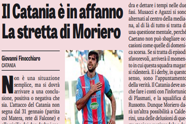 Gazzetta dello Sport: “Il Catania è in affanno. La stretta di Moriero”