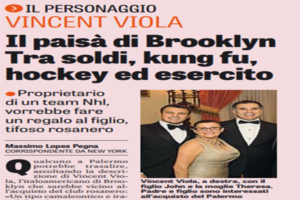 Gazzetta dello Sport: “Il paisà di Brooklyn Tra soldi, kung fu, hockey ed esercito. Proprietario di un team Nhl, vorrebbe fare un regalo al figlio, tifoso rosanero”