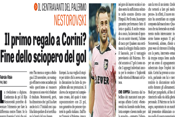 “La rivelazione a digiuno. L’astinenza da gol di Ilija Nestorovski potrebbe diventare l’elemento per fare la differenza contro l’Inter. Se lo augura Eugenio Corini che sull’attaccante ha riposto grande fiducia fin dal suo arrivo sulla panchina del Palermo. Le sette partite senza segnare in campionato inducono gli amanti del calcolo delle probabilità a puntare sul macedone. L’ultima rete l’ha messa a segno a Bologna il 20 novembre, un vantaggio effimero come accaduto più volte quest’anno ai rosanero che spesso si sono visti ribaltare il risultato. Nestorosvki, però, ha dimostrato che i gol li sa fare anche in A: i 7 iniziali con i quali ha fatto parlare di sé certificano la bontà del suo lavoro. ZITTI TUTTI Ha cominciato con la voglia di stupire il macedone, segnando anche per quattro gare di fila, e a ottobre ha fatto anche gol a Buffon con la Macedonia nelle qualificazioni agli Europei. La sua voglia di stupire per zittire chi lo aveva messo in discussione ha fatto da propellente alle sue prestazioni. Si diceva che segnare nel campionato croato, del quale è stato capocannoniere con 25 gol, non garantiva che potesse ripetersi in quello italiano. Dall’Inter Zapresic al Palermo, invece, il salto non è stato poi così nel vuoto. Il meglio di sé lo ha dato sotto la gestione De Zerbi: l’ex allenatore aveva trovato i meccanismo per mandarlo in porta con efficacia. Con Corini è rimasto ancora a secco, ma nelle sei gare del nuovo tecnico è andato sotto la sufficienza soltanto nello scontro diretto con l’Empoli. Per il resto, ha sempre garantito performance fatte di lotta e qualità. E anche restando a secco, ha lavorato di sponda con assist vincenti, l’ultimo di tacco per Quaison una settimana fa a Reggio Emilia contro il Sassuolo, per il vantaggio provvisorio del Palermo. Perché accanto ai 7 gol ci sono anche 3 appoggi indovinati ancora per lo svedese e Trajkovski nella vittoria di Marassi col Genoa. CHE COPPIA L’assenza dal tabellino dei marcatori non preoccupa affatto Corini: «Nestorovski sta facendo molto bene, lotta sempre e lavora molto per la squadra – ammette l’allenatore . Oltre al tacco per Quaison contro il Sassuolo ha mancato la rete di un niente. Credo che tornerà a fare gol molto presto». In effetti, il nuovo tecnico ha assemblato un coppia composta dal macedone e Quaison che sta fornendo un rendimento molto interessante: insieme hanno segnato 11 gol. Nestorovski, adesso, chiede a gran voce di ritrovare il feeling con la porta, interrotto ormai da troppo tempo forse anche per un senso di appagamento subentrato dopo l’exploit iniziale. Corini ha provato a scuoterlo, parlando con lui e mettendolo in discussione nelle scelte durante gli allenamenti. Modi per pungolarlo, al fine di rimetterlo sulla via della gloria personale. Il Palermo ne ha bisogno, soprattutto in un match dal pronostico sbilanciato come quello di questo pomeriggio con l’Inter.”. Questo quanto si legge su “La Gazzetta dello Sport”.