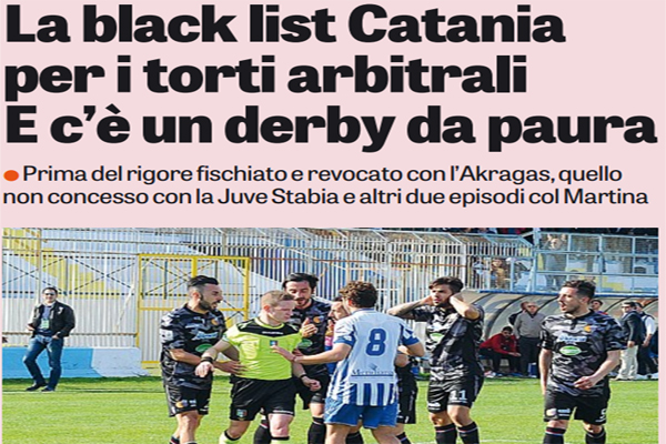 Gazzetta dello Sport: “La black list Catania per i torti arbitrali, e c’è un derby da paura…”