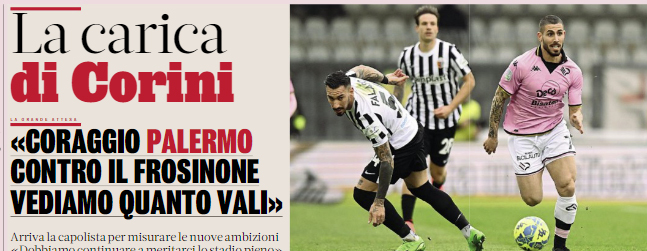 Gazzetta dello Sport: “La carica di Corini: «Coraggio Palermo, contro il Frosinone vediamo quanto vali»”