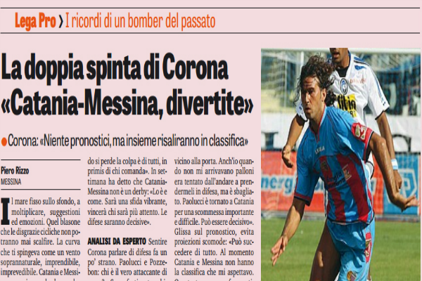 Gazzetta dello Sport: “La doppia spinta di Corona: «Catania-Messina, divertite». Corona: «Niente pronostici, ma insieme risaliranno in classifica»”