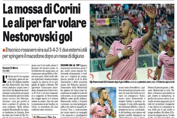 “L’ultimo gol lo ha segnato a Bologna, quasi un mese fa. Un digiuno insolito per Ilja Nestorovski che forse aveva abituato troppo bene i suoi tifosi. Un digiuno da interrompere al più presto per porre fine al momento più nero della storia recente del Palermo. Servono i suoi gol perché si torni a parlare di salvezza in casa rosanero. Nelle ultime stagioni Nestorovski ha segnato tantissimo in Croazia, dove ha vinto per 3 volte di fila il titolo di capocannoniere, 2 volte in Seconda Divisione e una volta in Prima, sempre con l’Inter Zapresic. Solo una volta aveva patito un’astinenza superiore al mese, l’anno scorso: a secco dal 2 marzo al 15 aprile, salvo poi scatenarsi nel finale di stagione con 9 reti nelle ultime 5 giornate del torneo croato. In un Palermo che segna poco, se il giocatore più prolifico si ferma sono guai. Infatti nelle ultime 4 giornate i rosanero hanno segnato la miseria di un gol, quello di Jajalo a Firenze. Per agevolare l’attaccante macedone, domani sera Corini varerà il 3421 con due trequartisti a supporto di Nestorovski, che troppo spesso si è trovato isolato in avanti. Ora che tutti lo conoscono un po’ meglio, tra l’altro, le attenzioni nei suoi confronti sono cresciute. DIGIUNO MA AL TOP Eppure, nonostante sia fermo a quota 7 gol, anche senza segnare Nestorovski ultimamente è risultato tra i migliori in campo. Questo perché al di là delle conclusioni e delle occasioni create dal Palermo (poche), l’attaccante della Macedonia ha appreso in fretta come interpretare al meglio il ruolo del centravanti, in un campionato difficile come quello italiano. Nestorovski, infatti, è il primo a pressare, sa come proteggere palla e far salire la squadra, retrocede fino a centrocampo per creare spazio ai compagni e ha imparato a guadagnarsi punizioni importanti che spesso fanno prendere fiato al resto della truppa. Tutte qualità molto apprezzate dagli allenatori. Peccato, però, che Nestorovski non sempre viene assecondato a dovere dai suoi compagni: i centrocampisti non si inseriscono come dovrebbero, i palloni invitanti per lui sono rarissimi, di cross dal fondo ne arrivano col contagocce. Nonostante tutto Nestorovski è sempre l’ultimo a mollare, incoraggia il resto della squadra nei momenti difficili, e non c’è postpartita in cui, a prescindere dal risultato, non «posta» sul proprio profilo Instagram un #ForzaPalermo. Un combattente che Corini indica ad esempio e non potrebbe fare altrimenti. GOL A MARASSI Ieri Nestorovski ha svolto un allenamento differenziato programmato. Niente di preoccupante, a Marassi, Nestorovski ci sarà. Per altro, a Genova è già andato in gol, contro la Sampdoria, in quella che poteva essere la seconda vittoria stagionale per il club del presidente Zamparini e che invece si è tramutata in una beffa per il gol subito a tempo scaduto. Da allora il Palermo ha sempre perso, 9 volte di fila. Un filotto terribile che ha fatto piombare i rosanero in coda alla classifica. Contro il Genoa Nestorovski ci riproverà con l’obiettivo di interrompere il suo digiuno e soprattutto quello del Palermo.”. Questo quanto si legge su “La Gazzetta dello Sport”.
