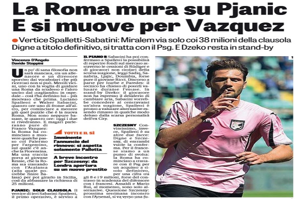 Gazzetta dello Sport: “La Roma mura su Pjanic e si muove per Vazquez”