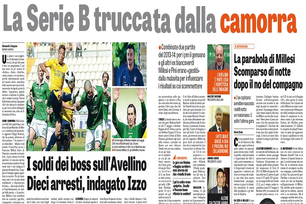 Gazzetta dello Sport: “La serie B truccata dalla camorra. I soldi dei boss sull’Avellino. Dieci arresti, indagato Izzo”