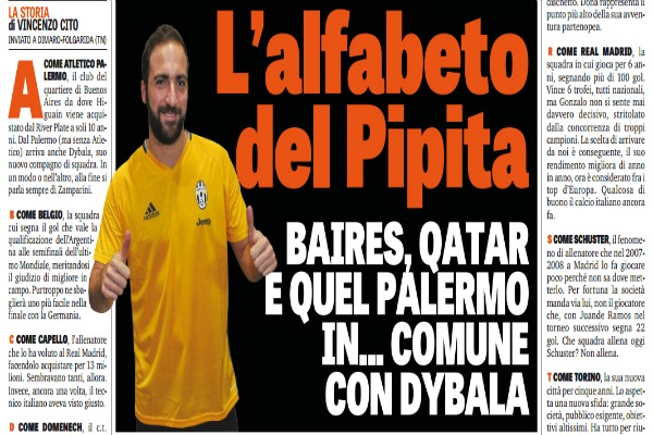 Gazzetta dello Sport: “L’alfabeto del Pipita. Baires, Quatar e quel Palermo in… comune con Dybala”