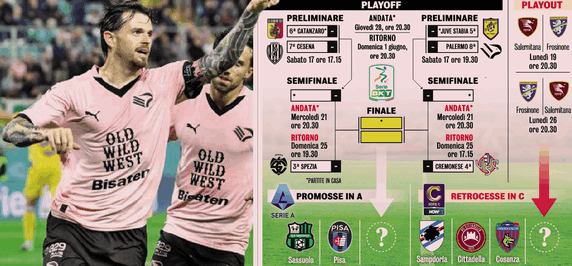 Lo schieramento è pronto, la griglia è completa: da sabato parte la 19ª edizione dei playoff di Serie B, con in palio l’ultimo biglietto per la Serie A. Spezia e Cremonese aspettano in semifinale, mentre sabato tocca a Juve Stabia–Palermo e Catanzaro–Brescia, per un preliminare che promette scintille. Saranno 16 giorni ad alta intensità, fino alla finale del 1° giugno.
