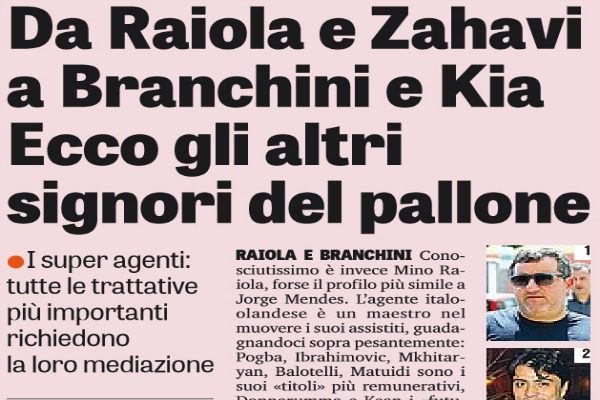 Gazzetta dello Sport: “Lo scandalo internazionale. Da Raiola e Zahavi a Branchini e Kia. Ecco gli altri signori del pallone”