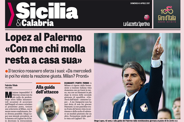 Gazzetta dello Sport: “Lopez avvisa il Palermo: «Con me chi molla resta a casa!»
