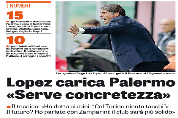 Gazzetta dello Sport: “Lopez carica Palermo: «Serve concretezza»”