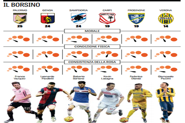 Gazzetta dello Sport: “Lotta salvezza, Genoa e Samp scoprono la paura. Carpi e Frosinone sperano, il Palermo…”