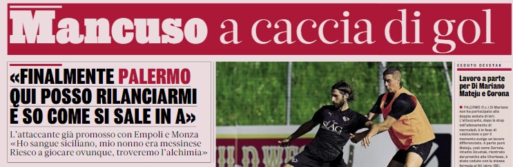 Gazzetta dello Sport: “Mancuso a caccia di gol: «Finalmente Palermo, qui posso rilanciarmi»