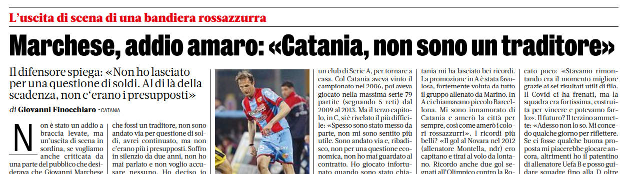 Gazzetta dello Sport: “Marchese, addio amaro «Catania, non sono un traditore»”