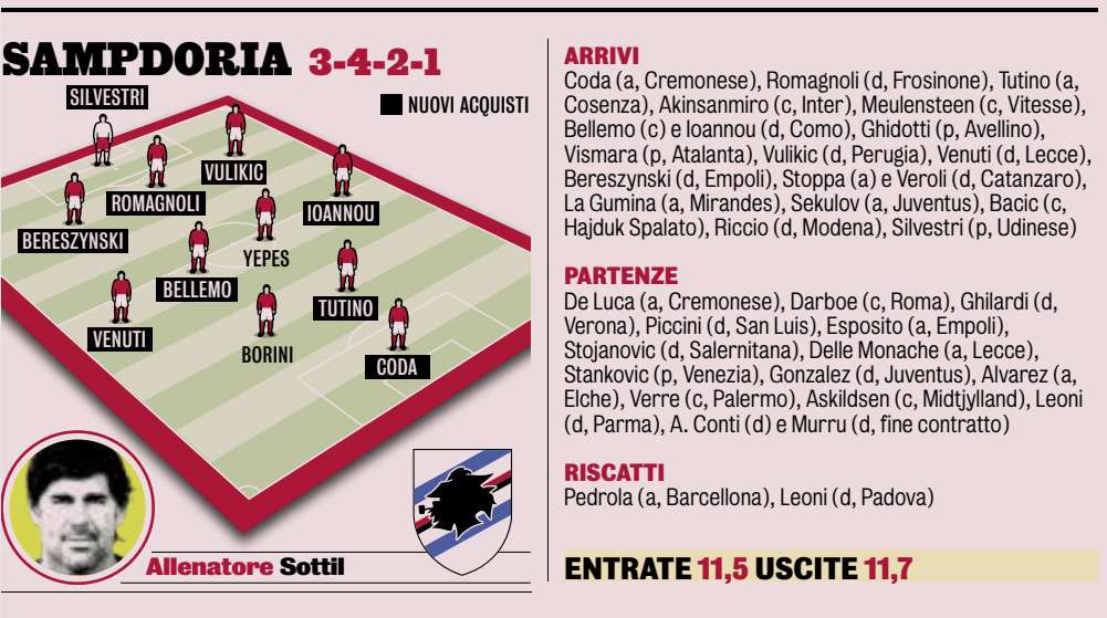 Gazzetta dello Sport: “Mercato di B Chi ha speso di più: Sampdoria, Palermo e Cremonese sul podio”