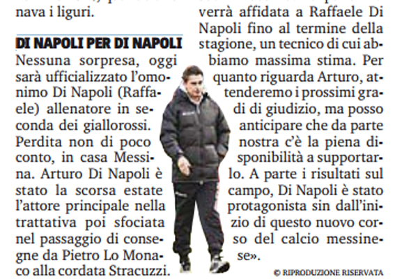 Gazzetta dello Sport: “Messina quattro acquisti e amarezza Di Napoli: «Sono innocente». Squadra affidata a…”