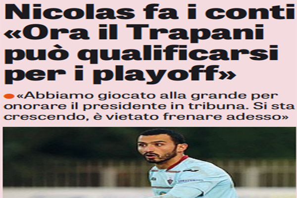 Gazzetta dello Sport: “Nicolas fa i conti: «Ora il Trapani può qualificarsi per i playoff»”