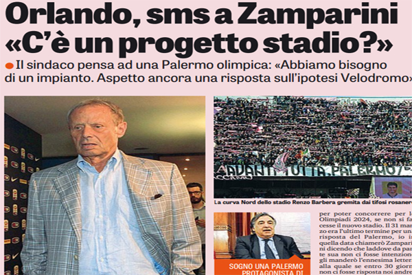 Gazzetta dello Sport: “Orlando, sms a Zamparini: «C’è un progetto stadio?». Il sindaco pensa ad una Palermo olimpica: «Abbiamo bisogno di un impianto». Pronti 25 milioni”