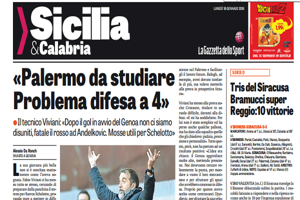 L’edizione odierna de “La Gazzetta dello Sport” ha così analizzato il match perso ieri dal Palermoc ontro il Genoa. Ecco quanto si legge: “La sua giornata più bella non si è conclusa esattamente come l’aveva sognata. Fabio Viviani ci ha messo tutto se stesso, cercando di preparare dalla panchina il terreno per Barros Schelotto, provando pure a mettere in difficoltà Gasperini. «Dobbiamo – spiega alla fine – fare in fretta. C’è un obiettivo preciso che non possiamo perdere mai di vista: mantenere il vantaggio sulla zona retrocessione. Ne siamo ben consci e, proprio per questo, sappiamo che dobbiamo muoverci in fretta». Lui sulla panchina ci si è ritrovato quasi per caso, ma non si è certo tirato indietro. «Abbiamo subito il gol in avvio, ma abbiamo avuto anche il merito di non disunirci. Nel secondo tempo, poi, eravamo risusciti a prendere le misure al Genoa. L’espulsione di Andelkovic ha toccato mai l’argomento riguardante la gestione della strategia della partita. Lui ha incontrato la squadra, ma solo per presentarsi e incoraggiare i giocatori. Io ho cercato di fargli vedere il maggior numero di cose possibile, in modo da consentirgli di acquisire più cono scenze sul Palermo e facilitargli il lavoro futuro. Balogh, ad esempio, avrei dovuto tutelarlo di più, ma volevo metterlo alla prova in prospettiva futura». Viviani ha messo alla prova anche Cristante, titolare in un ruolo difficile, davanti alla difesa: «E mi ha soddisfatto. Per lui non è stato semplice ed ha perso anche qualche pallone, ma ha dato alla squadra quello che gli chiedevo: pulizia, precisione e personalità». Tutto questo, però, non ha portato ad un risultato positivo: «L’idea era chiara: il Genoa aggredisce molto alto, mettendo pressione. Noi dovevamo cercare velocemente la punta, per mandare a vuoto il loro meccanismo e per sfruttare gli spazi che avrebbero concesso in difesa. Proprio per questo avevo scelto come centravanti Djurdjevic, per sfruttare la sua velocità e la capacità di attaccare in profondità. In più ho fatto una considerazione: nell’ultima partita avevamo utilizzato il 3- 4-3, un modulo nuovo per noi, ma non volevo schierarmi in questo modo contro una squadra che gioca, e bene, con il 3- 4-3 da anni. Avremmo potuto pagare il confronto. Putroppo con la difesa a 4 abbiamo sempre dei problemi e lo si è visto nel finale. Ora comunque deciderà Barros Schelotto. Con lui inizierò una full immersion per trasmettergli tutto quello che conosco di questo gruppo»”