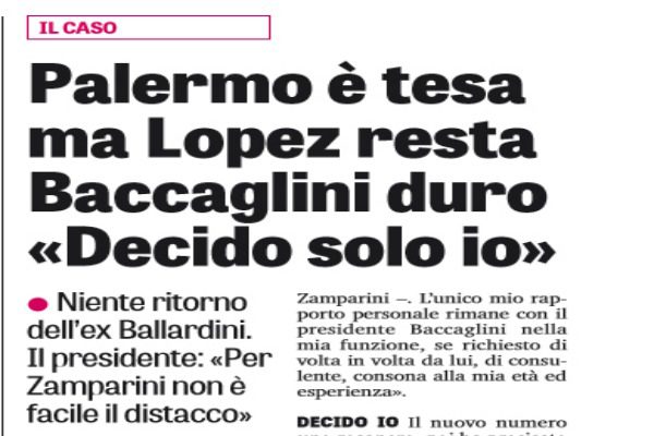 Gazzetta dello Sport: “Palermo è tesa, ma Lopez resta. Baccaglini duro: «Decido solo io». Il presidente: «Per Zamparini non è facile…»”