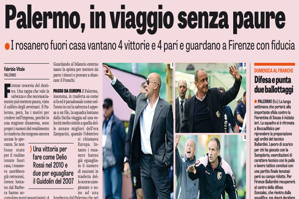 Gazzetta dello Sport: “Palermo, in viaggio senza paure. I rosanero fuori casa vantano 4 vittorie e 4 pari e guardano a Firenze con fiducia”