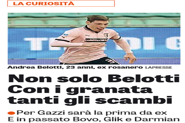 Gazzetta dello Sport: “Palermo, non solo Belotti. Con i granata tanti gli scambi”