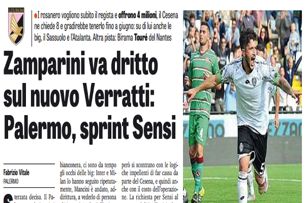 Gazzetta dello Sport: “Palermo sprint per Sensi, Zamparini punta sul nuovo Verratti. E D’Ambrosio…
