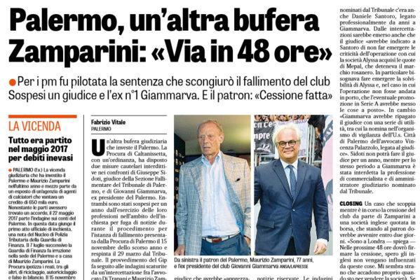 L’edizione odierna de “La Gazzetta dello Sport” ha deciso di riportare le ultime notizie che riguardano l’inchiesta della procura di Caltanissetta nei confronti Maurizio Zamparini e di Giovanni Giammarva. Ecco quanto si legge: “Un’altra bufera giudiziaria che investe il Palermo. La Procura di Caltanissetta, con un’ordinanza, ha disposto due misure cautelari interdittive nei confronti di Giuseppe Sidoti, giudice della Sezione Fallimentare del Tribunale di Palermo, e di Giovanni Giammarva, ex presidente del Palermo. Entrambi sono stati sospesi per un anno dall’esercizio delle loro professioni nell’ambito dell’inchiesta per fuga di notizie durante il procedimento per l’istanza di fallimento presentata dalla Procura di Palermo il 15 novembre dello scorso anno e respinta il 29 marzo dal Tribunale. Il provvedimento del Gip fa seguito alle indagini scaturite da un’intercettazione fra l’avvocato Di Trapani e Maurizio Zamparini nel corso di un’altra inchiesta sul fronte penale per riciclaggio e falso in bilancio, poi girata dalla Procura di Palermo a quella di Caltanissetta, sospettando che, in vista della decisione finale sulla richiesta di fallimento ci sia statauna fuga di notizie. Nella telefonata acquisita agli atti, l’avvocato Di Trapani dice a Zamparini di aver parlato del procedimento con il giudice che avrebbe «apprezzato le argomentazioni della difesa». Di Trapani dice di aver «percepito un messaggio favorevole da parte del magistrato». SENTENZA PILOTATA I pm di Caltanissetta, ora, sostengono che il no al fallimento del Palermo sarebbe stato pilotato e le ipotesi di reato a vario titolo sono di concorso in corruzione, abuso d’ufficio e rivelazione di notizie riservate. Le indagini del Nucleo di Polizia Economico-Finanziaria della Guardia di Finanza di Palermo avrebbero riscontrato che Sidoti, che aveva presieduto il collegio del Tribunale fallimentare, «pur essendo legato da un pregresso rapporto di conoscenza con Giammarva, allora presidente del Palermo, avrebbe omesso di astenersi dall’incarico». Inoltre secondo gli inquirenti tra i periti nominati dal Tribunale c’era anche Daniele Santoro, legato professionalmente da anni a Giammarva. Dalle intercettazioni sarebbe emerso anche che il giudice «avrebbe indicato a Santoro di non far emergere le criticità dell’operazione con cui lasocietà Alyssa acquisì le quote di Mepal, che deteneva il marchio rosanero. In particolare bisognava fare emergere la solvibilità di Alyssa e, nel caso in cui l’operazione non fosse andata in porto, che l’eventuale promozione in Serie A avrebbe messo le cose a posto». In cambio «Giammarva avrebbe ripagato il giudice con una serie di utilità, tra cui la nomina nell’organismo di vigilanza dell’U.s. Città di Palermo dell’avvocato Vincenza Palazzolo, legata al giudice». Sidoti non potrà fare il giudice per un anno, mentre per lo stesso periodo a Giammarva è stata interdetta la professione di commercialista e di amministratore giudiziario nominato dal Tribunale. CLOSING Un caso che scoppia mentre è in corso la cessione del club da parte di Zamparini a una società inglese quotata in borsa, che stando al patron dovrebbe avvenire entro due giorni. «Sono a Londra—spiega— Nelle prossime 48 ore dovrò firmare la cessione, spero gli inglesi non vengano influenzati da queste cose. Mi sembra strano che accadono proprio quando sto per vendere la società. Se il Palermo doveva fallire, allora gli organi di controllo della Borsa si preoccuperanno. Quello che dice un pm, però, non è una sentenza. Non c’è di mezzo né il Palermo, né Zamparini. Questo è un tentativo per non fare andare avanti il closing che però è fatto. Mi dispiace per Giammarva che ha sempre operato con grande correttezza»”.