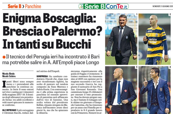 Gazzetta dello Sport, panchine di B: Enigma Boscaglia, Brescia o Palermo? In tanti su Bucchi” – la situazione (FOTO)