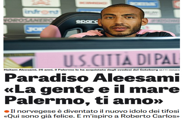 “Gli è bastata la partita d’esordio per entrare nei sentimenti dei tifosi. Il norvegese dal sangue caldo che ha infiammato il Barbera in Coppa Italia una settimana fa con il suo repertorio, adesso è pronto al debutto in campionato con il Sassuolo. Contro il Bari le progressioni sulla fascia sinistra di Haitam Aleesami, condite da dribbling e cross, si sono rivelate una spina nel fianco per gli avversari che alla fine hanno dovuto cedere il passaggio del turno al Palermo. Protagonista fin da subito con una prestazione di livello, Aleesami potrebbe rivelarsi uno dei trascinatori di cui la squadra ha bisogno. Le origini marocchine si sono rivelate con la grinta messa in campo. Dal Goteborg al Palermo, era il passaggio che Haitam auspicava per fare il grande salto in Serie A e magari confrontarsi con una tifoseria calorosa in grado di esaltare le sue caratteristiche. Che l’ultimo arrivato in casa rosanero abbia già fatto breccia nelle simpatie dei nuovi supporters lo dimostra il successo raccolto dal confronto a tu per tu con i fans rosanero sull’account Twitter del Palermo all’hastag #askAleesami. L’esterno dopo due settimane si sente già a casa sua. «I tifosi sono straordinari. C’è tanta passione qui, si respira ogni giorno – ammette l’esterno –. Sono felice di essere qui. La città è fantastica, è un paradiso. Il gruppo è molto unito, stiamo bene. Mi piacciono tante cose, la spiaggia ma anche tutta la città. Mondello è fantastica. Molto tranquilla, ci sono ottimi ristoranti e la spiaggia è splendida. Il tempo è perfetto, anche per la famiglia. Non ho ancora assaggiato i piatti tipici. La pasta è ottima, anche il pesce ha un sapore speciale. Mi sono integrato benissimo e sono felice di questa scelta». TRA ITALIANO E DIALETTO Sta imparando l’Italiano, ma nel frattempo ha già acquisto alcuni termini del dialetto palermitano. «Per adesso solo “compà” e “figghiò” (ride, ndr). Per il resto, in questo primo periodo sto cercando di apprendere tante parole italiane». Domenica si comincia col Sassuolo. «La partita di domenica sarà difficile, il Sassuolo è una buona squadra. Dobbiamo essere concentrati per fare bene». Gli chiedono del suo ruolo: terzino o esterno? E poi scattano gli inevitabili accostamenti con il passato con analogie e Fabio Grosso. «Meglio terzino in una difesa a quattro o esterno col modulo attuale? Il 343 è uno schema che mi piace perché è offensivo per tutta la squadra. Poi, chiaramente, decide il tecnico. Fabio Grosso era un ottimo calciatore, lo ricordo bene e mi sembra che difendesse anche bene. Senza contare che ha calciato anche il rigore decisivo ai Mondiali del 2006. Ma mi sono sempre ispirato a Roberto Carlos». SENZA LIMITI Col campionato alle porte l’interrogativo imperante riguarda gli obiettivi del Palermo. «Ho visto alcune partite dello scorso anno. La permanenza in Serie A è stata importante per la società. Vogliamo fare bene. Obiettivi? L’importante è che la squadra arrivi più in alto possibile». C’è anche chi gli chiede almeno 5 gol perché l’ha preso al fantacalcio. «È pericoloso fare promesse! Io spero di giocare molti match. Ma posso dire che darò sempre il 100% nelle partite in cui sarò impiegato»“. Questo quanto si legge nell’edizione odierna de “La Gazzetta dello Sport”.