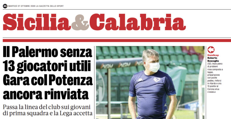 Gazzetta dello Sport: “Passa la linea del club sui giovani. Il Palermo senza 13 giocatori utili. Gara col Potenza ancora rinviata”