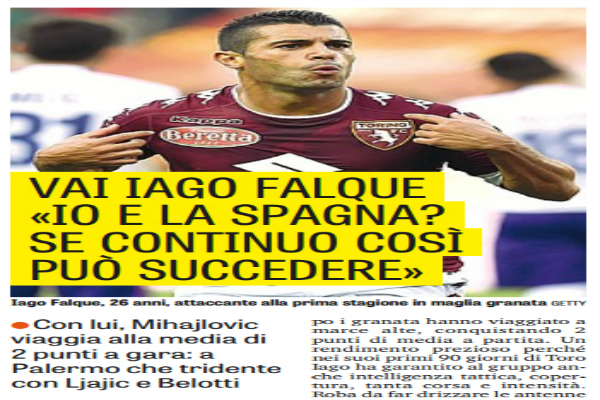 “Iago Falque ci ha preso gusto. Il bomber granata d’autunno ha messo insieme finora 4 gol in 5 partite di campionato, 3 dei quali realizzati nelle ultime 2 uscite contro Roma e Fiorentina; e adesso non ha alcuna intenzione di alzare il piede dall’acceleratore. Un rendimento offensivo cui bisogna aggiungere anche l’assist servito a Martinez al debutto casalingo contro il Bologna. Merito degli schemi di Mihajlovic, l’allenatore che ne ha studiato a fondo le caratteristiche e che ora gli chiede di partire defilato dalla fascia destra lasciandolo però libero di rientrare e di dar sfogo al proprio estro. Oltre ai gol, a promuoverlo a pieni voti sono le statistiche di squadra: i numeri, infatti, dicono che con lui in campo i granata hanno viaggiato a marce alte, conquistando 2 punti di media a partita. Un rendimento prezioso perché nei suoi primi 90 giorni di Toro Iago ha garantito al gruppo anche intelligenza tattica, copertura, tanta corsa e intensità. Roba da far drizzare le antenne anche al c.t. spagnolo Lopetegui che sta portando avanti l’opera di rinnovamento fra le Furie Rosse. CHANCE NAZIONALE Lui, Iago, strizza l’occhio alla nazionale ma sa bene che la strada per ritagliarsi uno spazio passa attraverso il granata: «Certo, anche perché sono partito bene, faccio gol, ma so che la nazionale ha tanti giocatori fortissimi. E allora io ci provo ma sono realista; però se procedo con questa mediagol una chance me la potrei meritare anch’io». Lunedì sera, a Palermo, Iago potrebbe mettere un altro tassello nella marcia di avvicinamento alla Roja, sfruttando anche il rientro dal 1’ di Ljajic. Il fatto di dover fare i conti con il talento serbo e con l’ex di turno Belotti potrebbe infatti allentare la guardia rosanera nei confronti dello spagnolo. E la Fiorentina sa bene quando Iago sia letale quando si tratta di approfittare della minima sbavatura avversaria per apporre la propria firma”. Questo quanto si legge sull’edizione odierna de “La Gazzetta dello Sport”.