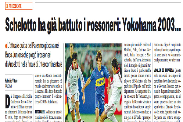 Gazzetta dello Sport: “Schelotto ha già battuto i rossoneri: Yokohama 2003…”