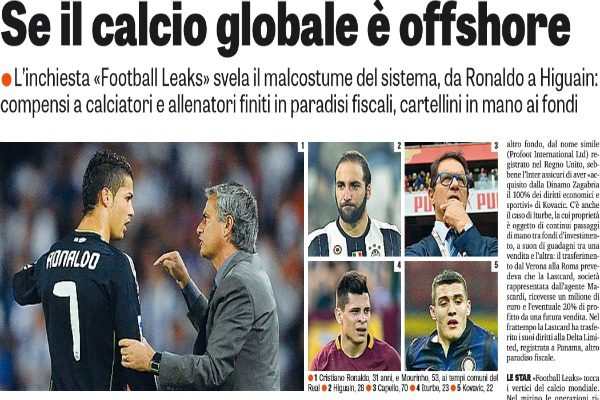 “Il calcio, industria globale da 20 miliardi di euro, ha una predilezione particolare per i paradisi fiscali. Non da ora. Se poi si scopre che anche il tre volte Pallone d’oro e lo Special One degli allenatori sono caduti nel comune vizietto, con la coincidenza non casuale che sono rappresentati dallo stesso agente, il numero uno Jorge Mendes, allora significa che il “nero” (o il “grigio”, a esser buoni) fa parte del dna del sistema. L’inchiesta «Football Leaks», condotta da 12 testate giornalistiche europee tra cui l’Espresso e nata da un immenso archivio girato da una fonte anonima al settimanale tedesco Der Spiegel, mostra proprio la pervasività di certe condotte in materia fiscale, ai massimi livelli del panorama internazionale. Condotte che riguardano squadre, calciatori, allenatori, dirigenti, procuratori. HIGUAIN Le società italiane citate nei documenti sono diverse: Juventus, Milan, Inter, Napoli, Roma, Torino e altre. Nella prima puntata pubblicata ieri l’Espresso si concentra su alcuni casi, come quello di Gonzalo Higuain. C’è una fattura da 190mila euro che nel 2014 la Convergence Capital Partners, società olandese, paga alla Paros Consulting ltd, registrata alle Isole Vergini britanniche, zona offshore che garantisce peraltro l’anonimato di soci e amministratori: la causale è «servizi prestati in riferimento al Real Madrid e al giocatore G. Higuain». Non è la prima volta che ci si imbatte in questi schemi, con una parte dei compensi per gli agenti o i corrispettivi dei diritti d’immagine versati a società a tassazione agevolata (tipo quelle olandesi) e poi girati in paradisi fiscali. TERZE PARTI La sospetta elusione (se non evasione) fiscale si intreccia con quel sottobosco che riguarda i fondi d’investimento e, in generale, la proprietà dei cartellini dei giocatori. Le TPO (Third party ownership) sono state messe al bando della Fifa ma in passato hanno imperversato e, sotto alcune forme, continuano a farlo. «Football Leaks» svela diversi retroscena in proposito. Per esempio la parabola di Alex Sandro, ora alla Juve. Nel 2011 l’esterno sinistro arrivò in Europa, al Porto, per 9,6 milioni di euro. Il suo cartellino apparteneva per il 30% al Club Atletico de Paranà e per il 70% al Maldonado, società uruguaiana spesso al centro di triangolazioni visti i vantaggi fiscali di quel Paese. Il Maldonado incassò per Alex Sandro 6,1 milioni di euro: in base all’archivio di «Football Leaks» dietro il Maldonado ci sarebbe stato, all’epoca, l’attuale capo dei servizi argentini Gustavo Arribas, in precedenza tra i proprietari della HAZ, che tra le altre cose finanziò l’acquisto del 50% di Higuain da parte del Locarno incassando un ingente profitto dalla successiva vendita del centravanti argentino al Real Madrid. FINO A HONG KONG I dubbi sorgono anche a proposito del trasferimento di Kovacic all’Inter: metà del cartellino del croato era di proprietà di un fondo di Hong Kong, Profoot International Limited e, secondo l’Espresso, a marzo 2015 quel 50% sarebbe passato a un altro fondo, dal nome simile (Profoot International Ltd) registrato nel Regno Unito, sebbene l’Inter assicuri di aver «acquisito dalla Dinamo Zagabria il 100% dei diritti economici e sportivi» di Kovacic. C’è anche il caso di Iturbe, la cui proprietà è oggetto di continui passaggi di mano tra fondi d’investimento, a suon di guadagni tra una vendita e l’altra: il trasferimento dal Verona alla Roma prevedeva che la Lastcard, società rappresentata dall’agente Mascardi, ricevesse un milione di euro e l’eventuale 20% di profitto da una futura vendita. Nel frattempo la Lastcard ha trasferito i suoi diritti alla Delta Limited, registrata a Panama, altro paradiso fiscale. LE STAR «Football Leaks» tocca i vertici del calcio mondiale. Nel mirino le operazioni riguardanti Cristiano Ronaldo e Josè Mourinho. Tra il 2009 e il 2014 CR7 avrebbe ricevuto 74,7 milioni di euro nei conti della Tollin, registrata nelle Isole Vergini britanniche. E altri 74,8 sarebbero stati incassati offshore alla fine del 2014 come corrispettivo della cessione dei diritti d’immagine a Peter Lim, uomo d’affari di Singapore proprietario del Valencia. Secondo l’Espresso Ronaldo avrebbe pagato «tasse irrisorie» su quei compensi, l’entourage del giocatore esibisce a discolpa un documento del Fisco spagnolo in cui si attesterebbe che la sua posizione tributaria è in regola. Anche la società personale di Mourinho, Koper Services, è domiciliata alle Isole Vergini britanniche: tra il 2010 e il 2015 l’allenatore avrebbe pagato 500mila euro di tasse su 8,1 milioni incassati per i diritti d’immagine. E nel caso di alcuni contratti pubblicitari i compensi sarebbero transitati dall’Irlanda (attraverso la società MultiSports Image Rights) per poi perdersi offshore. BENEFICENZA Un altro allenatore, italiano, è presente nei file di «Football Leaks». È Fabio Capello, che avrebbe ricevuto un compenso di 75mila dollari più hotel di lusso e voli in business per partecipare all’evento benefico «Leo Messi & friends tour». Si cita anche una fattura di 10mila dollari emessa dalla Doyen Marketing e indirizzata a Capello. Doyen avrebbe ricevuto una commissione dal tecnico? L’avvocato Pierfilippo Capello replica: «È vero che mio padre ha ricevuto un compenso, come peraltro è normale per tutti quelli che partecipano a questi eventi, ma è assolutamente falso che sia stata pagata da noi una commissione a Doyen o a chicchessia».”. Questo quanto si legge su “La Gazzetta dello Sport”.