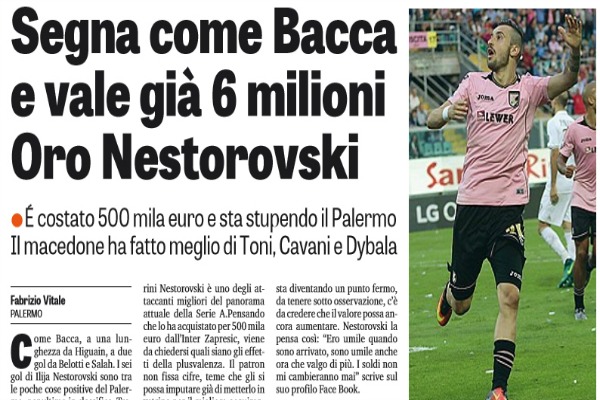 “Come Bacca, a una lunghezza da Higuain, a due gol da Belotti e Salah. I sei gol di Ilija Nestorovski sono tra le poche cose positive del Palermo, penultimo in classifica. Trascinatore anche nella gara persa col Milan verso il momentaneo pareggio. Diamanti ha trovato un corridoio e lui ha trafitto Donnarumma. Non un portiere qualunque, non avversario qualsiasi. Dopo avere perforato Buffon con la Macedonia, si è tolto pure il lusso di bucare il secondo portiere più forte del campionato. Alzi la mano, però, chi avrebbe previsto che dopo 12 giornate avrebbe segnato così tanto. Il macedone è al terzo gol consecutivo e sembra non volersi fermare più. Se saranno rose fioriranno, ma qualche bocciolo sta cominciando a dischiudersi, perché un avvio così è in linea con gli altri bomber del campionato. CHE PLUSVALENZA Per Zamparini Nestorovski è uno degli attaccanti migliori del panorama attuale della Serie A.Pensando che lo ha acquistato per 500 mila euro dall’Inter Zapresic, viene da chiedersi quali siano gli effetti della plusvalenza. Il patron non fissa cifre, teme che gli si possa imputare già di metterlo in vetrina per il migliore acquirente. «Ditelo voi quanto vale, io non ne parlo», dice il patron. Facendo due conti, però, in base ai parametri attuali del mercato e al rendimento dell’attaccante, non si sbaglia se si posiziona il suo cartellino già tra i 5 e i 6 milioni di euro. A oggi, l’investimento di Zamparini si è decuplicato e se si considera che c’è un campionato da giocare e un rendimento in nazionale della quale sta diventando un punto fermo, da tenere sotto osservazione, c’è da credere che il valore possa ancora aumentare. Nestorovski la pensa così: “Ero umile quando sono arrivato, sono umile anche ora che valgo di più. I soldi non mi cambieranno mai” scrive sul suo profilo Face Book. COME AMAURI E MICCOLI Il macedone, nella sua voglia di stupire, si è già messo dietro alcuni attaccanti che hanno fatto la storia del Palermo dell’era Zamparini in Serie A. Dopo 12 giornate ha già fatto meglio di Dybala (2 gol nel 201213, 5 nel 201415) e di Toni (3 gol nel 200405), ma anche di Cavani e Hernandez che hanno sempre iniziato a carburare più tardi, e di Gilardino, lo scorso campionato fermo a 3 marcature. E’ alla pari con Amauri e Miccoli, rispettivamente nella stagione 200607 e 200809. Chi ha fatto meglio del macedone è solo Pastore con 7 reti (grazie anche alla tripletta col Catania) nel 201011. Magari non sarà bello a vedersi, non incanterà per elganza stilistica, però la porta la sa vedere, e quest’anno pure spesso. Finora l’ha inquadrata 13 volte e ha realizzato quasi la metà delle occasioni che ha avuto in gara. Per un Palermo che tira poco, è ultimo con l’Empoli con 83 conclusioni totali, tra tiri nello specchio e fuori, il macedone è una risorsa importante sotto il profilo realizzativo, un valore aggiunto. La speranza è che il «magic moment» del macedone possa coinvolgere anche gli altri compagni di squadra, poco inclini alla vena realizzativa. Gli altri gol del Palermo li hanno segnati Rispoli, Chochev e Quaison. Troppo poco per salvarsi”. Questo quanto si legge su “La Gazzetta dello Sport”.