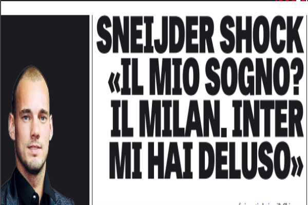 Gazzetta dello Sport, Sneijder shock: “«Il mio sogno? Il Milan. Inter mi hai deluso»”