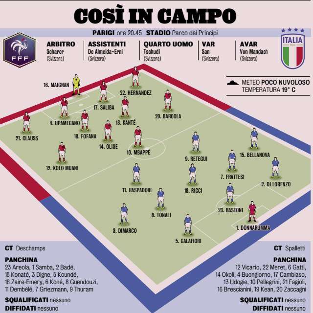Gazzetta dello Sport: “Stasera Francia-Italia, le probabili formazioni”