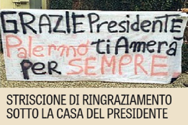 “Un ringraziamento sincero, quello che qualche anonimo tifoso ha voluto recapitare a Zamparini sotto forma di striscione, ieri mattina, direttamente sotto casa sua, ad Aiello del Friuli. Un modo per rimarcare che al di là delle recenti delusioni (e contestazioni), Zamparini è il presidente più vincente della