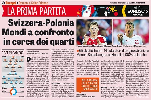 Gazzetta dello Sport: “Svizzera-Polonia: mondi a confronto in cerca dei quarti”