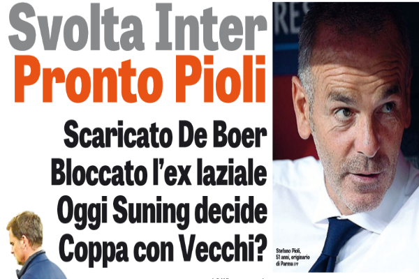 Gazzetta dello Sport: “Svolta Inter, pronto Pioli. Scaricato De Boer, bloccato l’ex laziale. Oggi Suning decide. Coppa con Vecchi?”