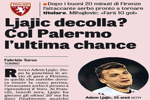 Gazzetta dello Sport: “Torino, Ljajic decolla? Col Palermo l’ultima chance”